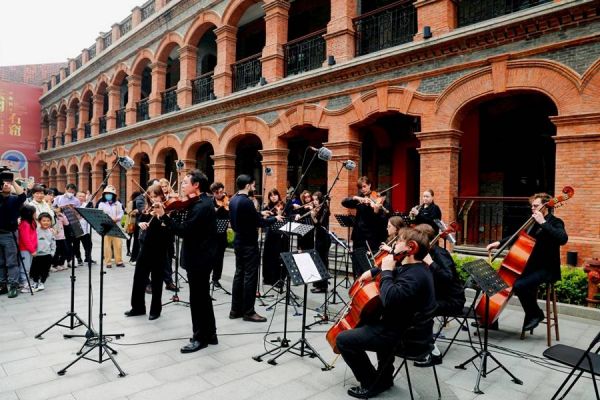 4月4日,第41届上海之春文艺轻骑兵惠民行·虹口区专场首场演出,在今潮8弄开启。俄罗斯莫斯科国立柴科夫斯基音乐学院独奏家室内乐团登上百年弄堂屋顶,让高雅艺术与海派历史建筑撞出火花,奏响了独属于上海的春日乐章。