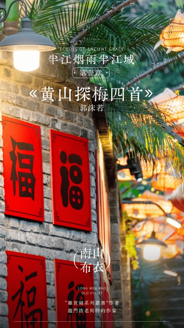 这组《黄山探梅四首》以寻梅为线,穿起了郭沫若在重庆山城早春里的复杂心绪。开篇“闻说寒梅已半开”,是带着期待欣然前往,嘉陵江的东风、绿嫩红肥与碧苔,交织成一幅明丽的早春图景。