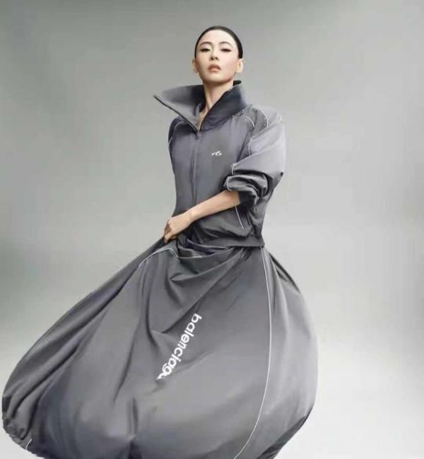她这次拍了两组照片,一组在街边进行,穿着灰扑扑的Balenciaga外套,扎着高马尾但有点毛躁,手插在口袋里,眼神没有对着镜头,就那样自然地落下来。