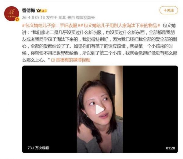 据4月8日网友爆料,包贝尔老婆演员包文婧在直播里的一番大实话,直接让“二胎养育差异”这个话题冲上了风口浪尖。她坦言自家二胎儿子“面条子”几乎没穿过新衣服,用的全是亲友孩子淘汰下来的旧物,并直言“全部的爱和耐心都给了大女儿饺子”,对第二个孩子“好像没有那么那么那么上心”。这番毫不掩饰的对比,瞬间在网友中炸开了锅。