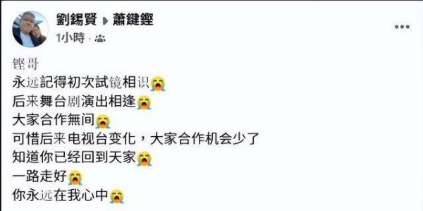亚视忠臣刘锡贤也回忆两人初识到后来的合作,直言会永远记得这位老朋友。能够让同行在他离开时这样集体怀念,某种程度上,也说明萧键铿在圈内留下的,从来不只是作品,还有做人做事的分量。