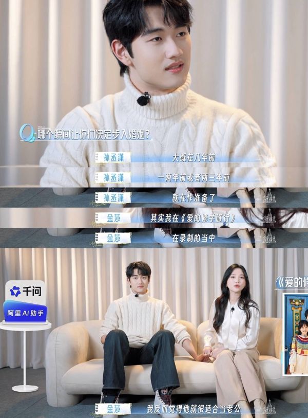 为了成为金莎的丈夫,孙丞潇大概是两三年前就开始准备了。而金莎在《爱得修学旅行》中,就觉得孙丞潇适合当老公。
