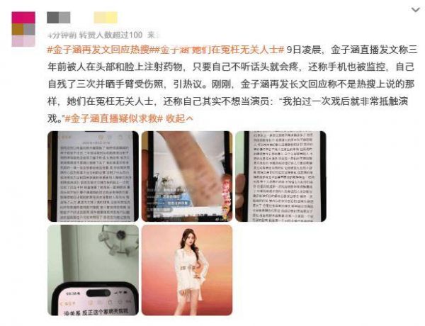 金子涵退圈一周年直播控诉:遭不明注射后长期被监控