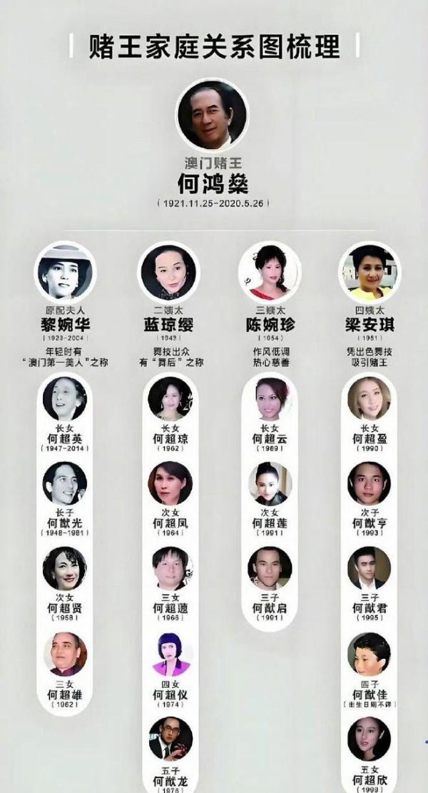 赌王家族发布讣告,赌王何鸿燊与二太蓝琼缨的第三个女儿何超蕸因病离世,享年60岁。