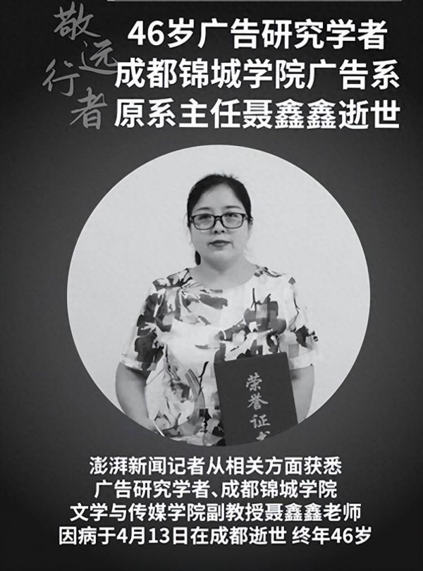 46岁广告研究学者、成都锦城学院广告系原系主任聂鑫鑫逝世