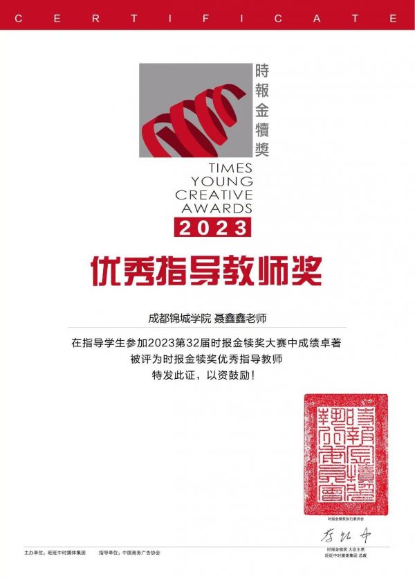 在她的栽培与引领下,她的学生得以在各大专业赛事中收获奖项与荣誉,其中包括全球华人金犊奖,全国大学生学院奖等去权威奖项,而聂教授本人也曾受邀担任学院奖和大广赛赛事的评委,可见她在该领域的地位与知名度。