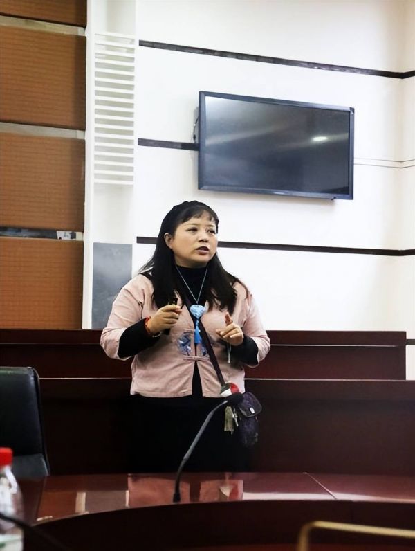 去年6月,聂鑫鑫还与其他老师一起受邀企业走访,当时她穿着裙子,看上去格外优雅。