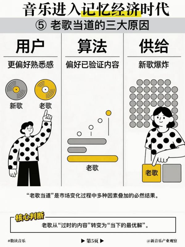 我的判断是,在供给失控的大趋势下,用户需求将进一步转向老歌,音乐市场正在进入一个属于“记忆经济”的时代。