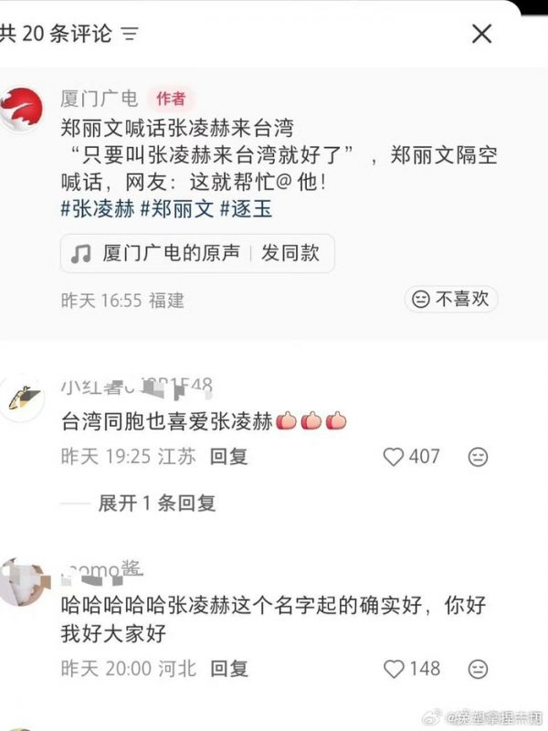 #郑丽文喊话张凌赫赴台# 两岸一家亲,期待张凌赫赴台与粉丝见面,用影视交流拉近两岸距离,共促文化交融✨