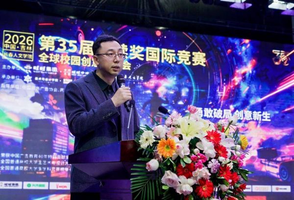 副校长刘涛在致辞中指出,学校与金犊奖已携手二十载,视觉传达设计专业师生累计参赛作品数千件,斩获百余项大奖,是“以赛促教、真题真做”理念的扎实成果。面对AI技术快速迭代,学校持续推进项目化教学改革,推动课堂与产业同频、教学与岗位无缝衔接,以实战能力赋能学生成长。希望师生们积极响应“勇敢破局,创意新生”的赛事主题,深化产教融合,将赛事资源转化为育人成果,为吉林省文化创意产业的高质量发展贡献“人文力量”。