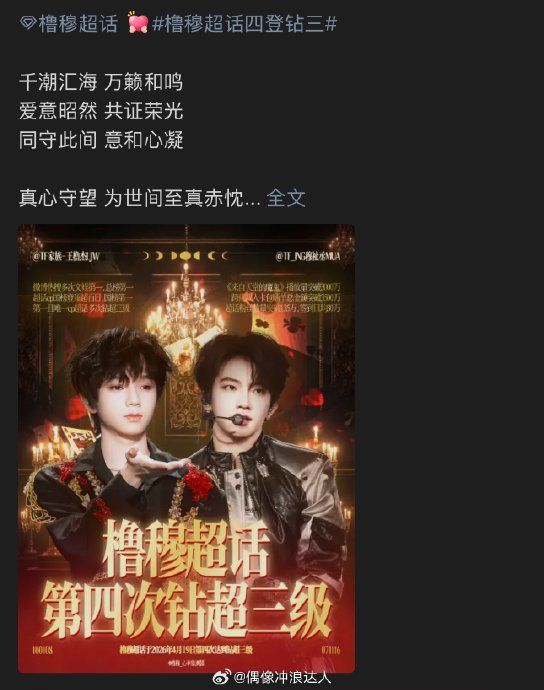 橹穆CP超话四登钻三霸榜国一122天