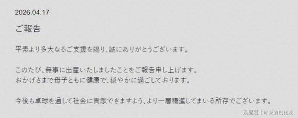 福原爱官宣三胎孩子出生,母子平安,将会继续为乒乓球做贡献