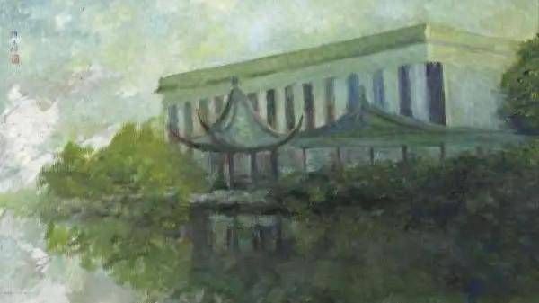 今天,当我们走进展厅,驻足于颜文樑的油画前,便能够真切地感受到低调背后深沉的艺术力量:色粉画《厨房》造型严谨精准,以江南旧式厨房为蓝本,将寻常的烟火描摹出含蓄的诗意;油画《上海外滩》以通透的光感捕捉着都市的摩登轮廓,远眺建筑群与近处的外白渡桥形成冷暖色调对比,勾勒出上海独有的肌理和风情;油画《月夜》则尽显江南文人的雅致与柔情,水天相接处朦胧月光与粼粼波光深藏着对故乡的深切眷念;油画《沧浪夏夜》更是迟暮之年的深情绝笔,他在93岁时提笔描绘了教学大楼与凉亭倒映在葑溪水中的场景,笔笔皆是对苏州美专的无尽追忆。