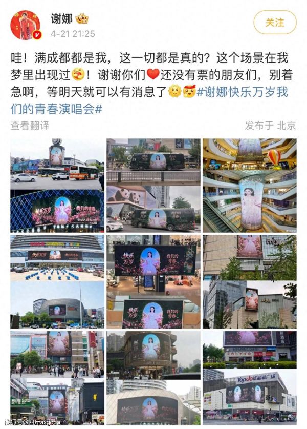谢娜成都演唱会应援夸张,粉丝花钱全城刷屏幕,谢娜感慨做梦见过
