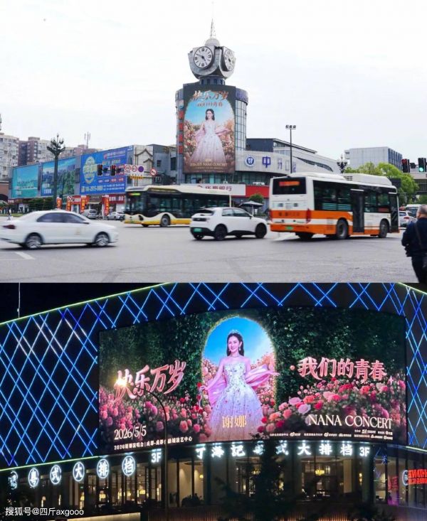 春熙路的地标大屏、商场里的环形巨幕,甚至是穿城而过的公交车身、地铁灯箱,都印满了快乐万岁演唱会海报。