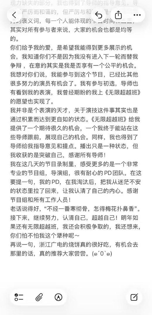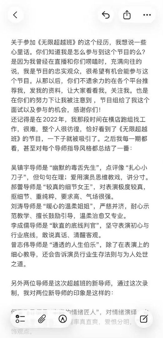 谁懂啊!冯建宇这篇长文看哭了。从2022年横店跑组的彷徨,到如今站在《无限超越班》的舞台圆梦,这份双向奔赴的真诚真的太戳人了。#冯建宇夸了所有无限超越班导师##冯建宇自曝2022年还在横店跑龙套#