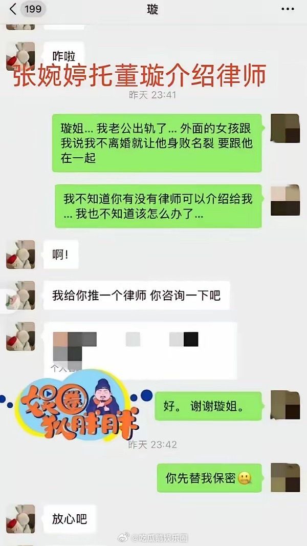 张婉婷被曝曾介入高云翔董璇婚姻?如果是真的,她是真把董璇当傻子啊!还第一时间求助董璇问离婚律师,看聊天记录她俩也不是很熟。​一开始大家都觉得她还和董有联系,觉得她不会这么没底线。只能大家低估npd的恐怖了,她可能觉得她没有破坏人家的家庭,反而觉得自己伟大、讲义气呢,自然有脸跟董做朋友 。​​董璇的朋友目前看起来就佟丽娅没背刺她,其他都是点啥人啊