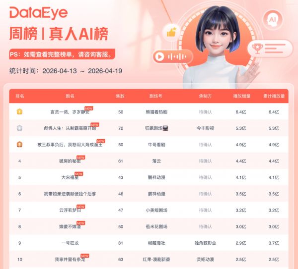 若将2026年2月视为真人短剧走下坡路的关键节点——平台政策调整与AI短剧冲击共同作用,使市场进入调整期,那么3月的分账数据无疑能直观反映当前的市场水位。
