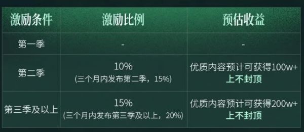 三是面向真人系列剧激励,按季激励,上不封顶。经平台审核属于系列剧,针对不同季内容对应激励比例,在自然免费模式的原分账基础上进行额外激励,激励周期为90天,每月随平台结算周期下发活动专项激励。三大激励活动均从4月15日起正式生效。