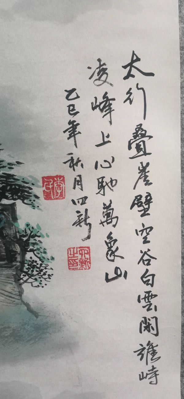 画作题款:太行叠崖壁,空谷白云闲。谁峙凌峰上,心驰万象山。