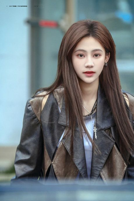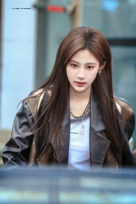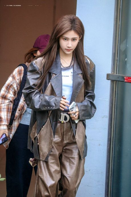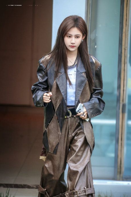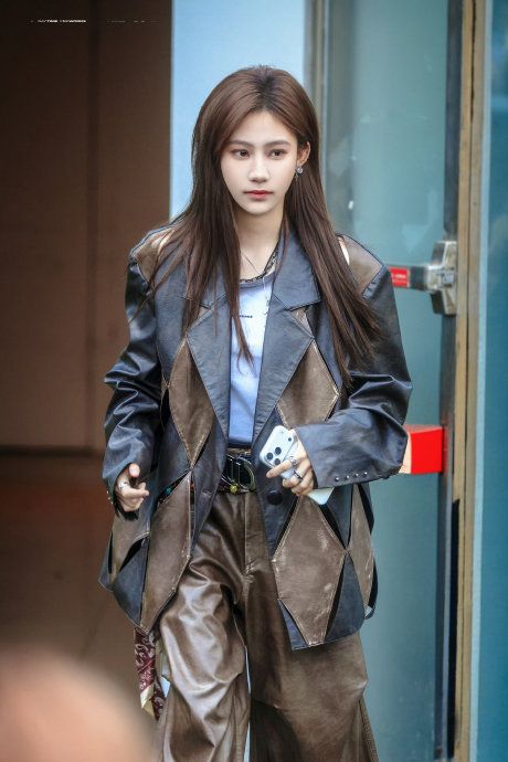 #袁一琦拼色皮衣look#袁一琦《超燃青春的合唱》上班路透好小的一张脸!拼色皮衣造型太好看了录制顺利 #袁一琦超燃青春的合唱上班#