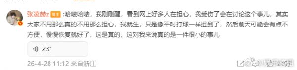 张凌赫腿伤好转坚持拍戏,报平安后继续工作