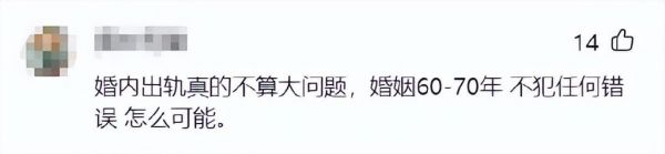 甚至还有人觉得,婚内出轨算不上大问题,结婚几十年,怎么可能不犯错,可以原谅!