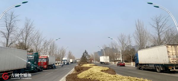 北京市顺义区空港工业园区的道路两旁,停着各种各样的货运卡车。(摄影/涂思敏)