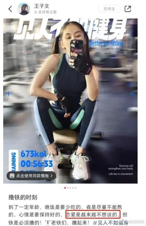 总的来说,王子文在健身上的努力和保持状态的自信,以及对于生活的积极态度,都值得我们学习和借鉴。祝福她未来的生活越来越好,也期待她在演艺事业上有更多精彩的表现。
