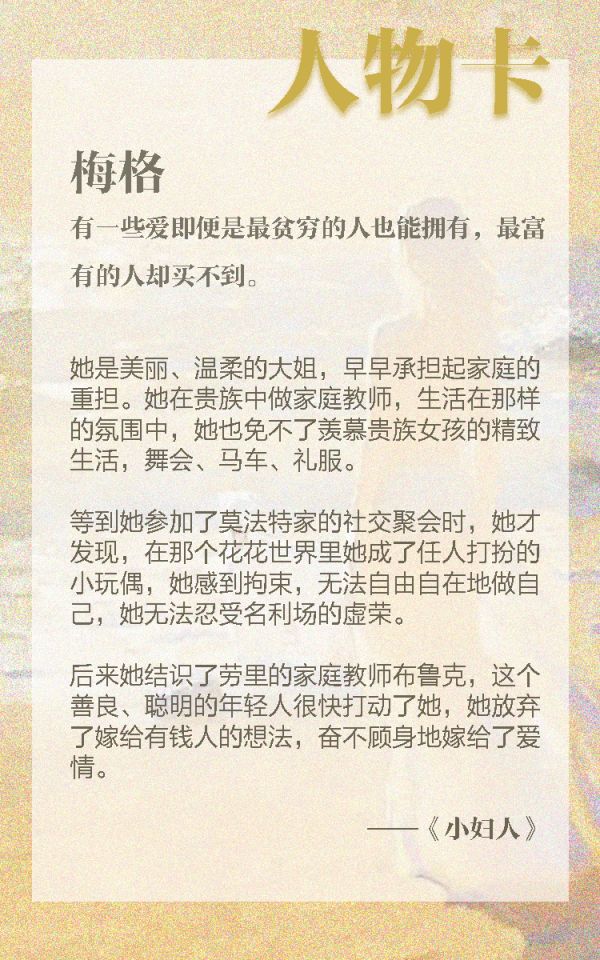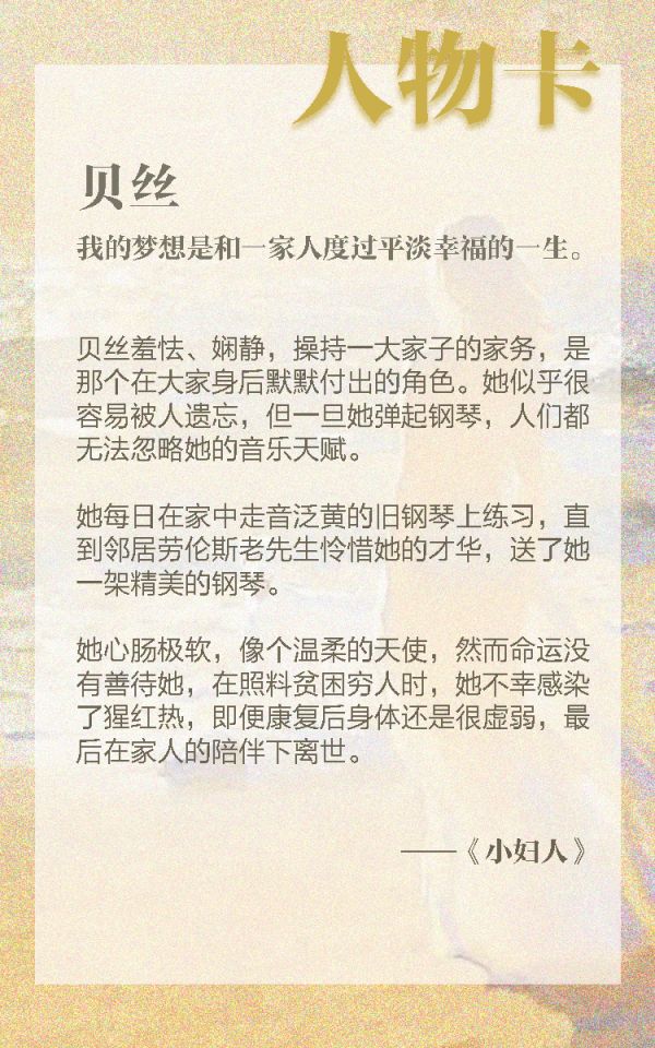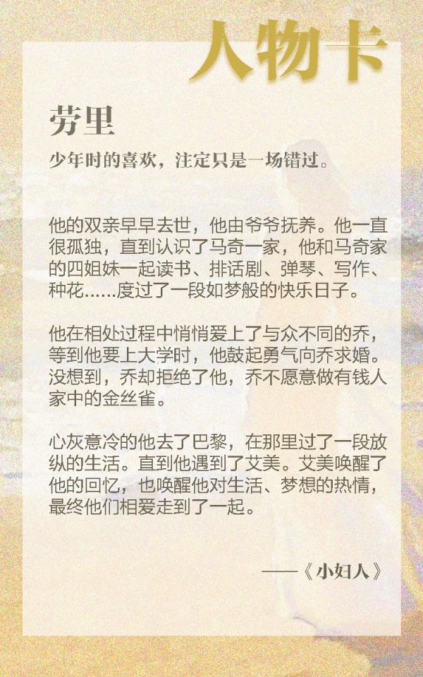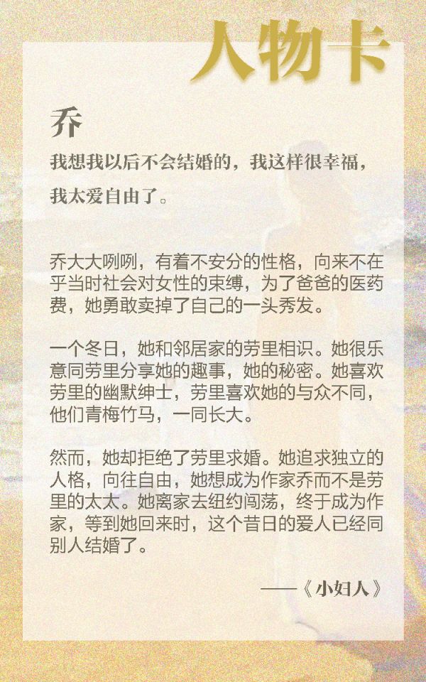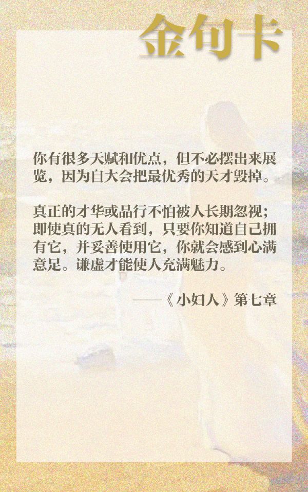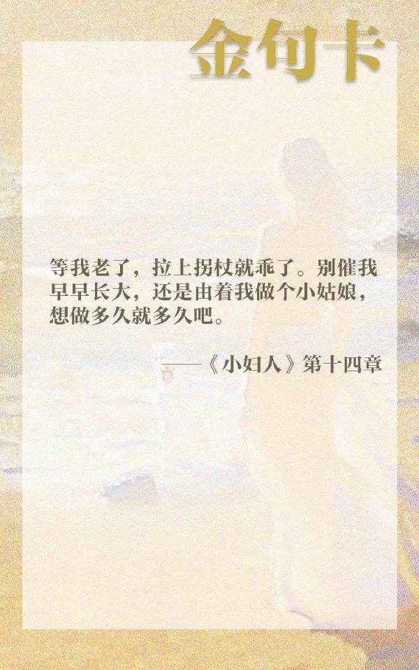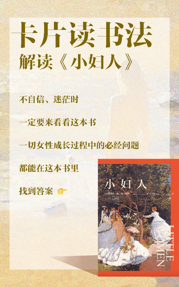 受创作时代限制,这本书里的不少婚姻观念放在今天略显落后,但这不妨碍我们每个时代都要拥有属于自己的《小妇人》,所有少女成长过程中的必经问题,都能在这本书里找到答案,暗恋与被爱、理想与现实的苦恼、贫穷与富有的矛盾......