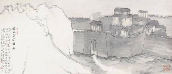 《嘉峪关雪夜图》纸本设色 29cm×67cm 2021