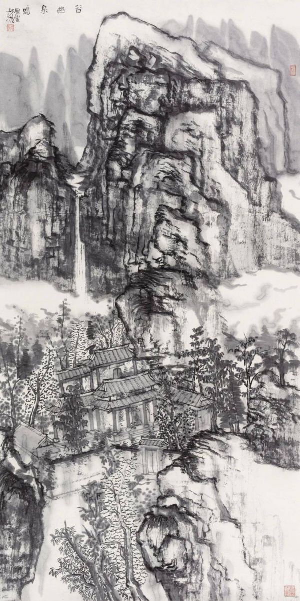 《谷幽泉鸣》纸本水墨 138cm×69cm 2021