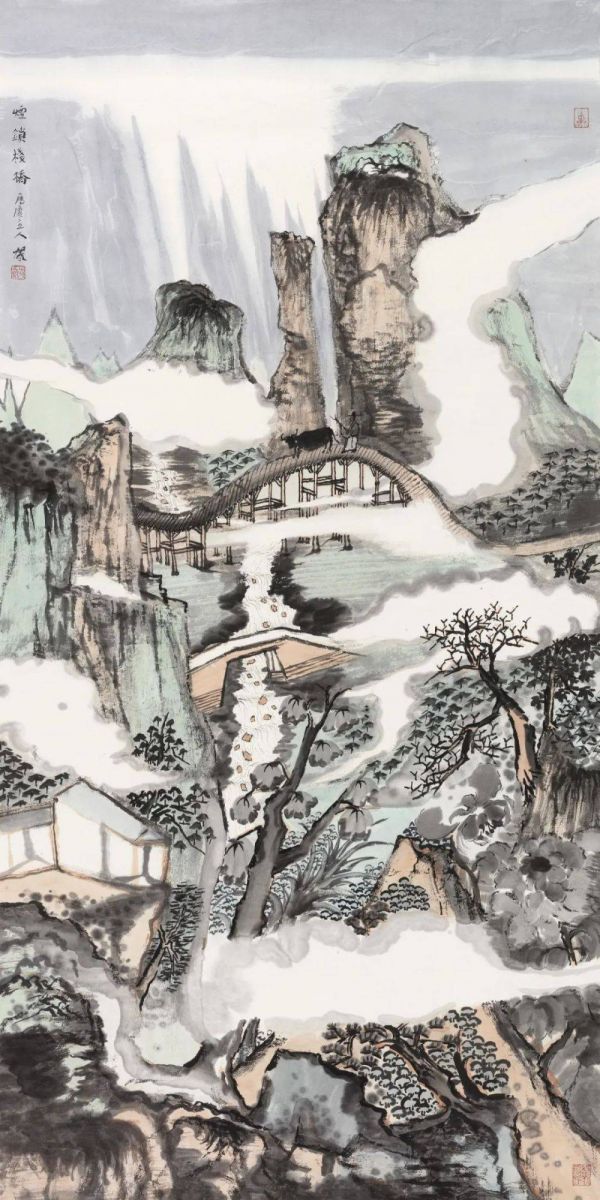 《烟锁栈桥》纸本设色 138cm×69cm 2020